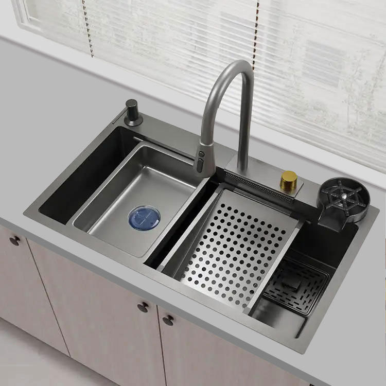 Представляем нашу кухонную мойку с рабочей станцией — революционное дополнение к современной кухне, гармонично сочетающее в себе функциональность и стиль. Этот инновационный дизайн мойки от MNBAM превращает традиционную концепцию кухонной мойки в многофункциональное рабочее место, предлагающее новые кулинарные впечатления.